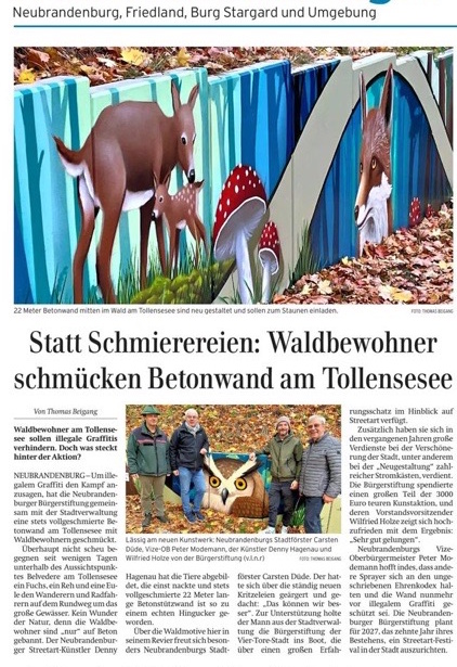 Statt Schmierereien: Waldbewohner schmücken Betonwand am Tollensesee