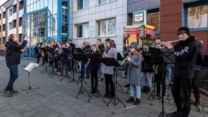 Im wahrsten Sinne des Wortes, vom "Blasorchester 2.0" Neubrandenburg umrahmt, war die Schlüsselübergabe weit hörbar.