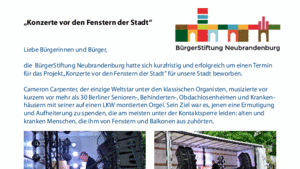 Sensationell ! Neuer Stand Spendenkonto 3.220 Euro - für "Konzerte vor den Fenstern der Stadt" am 06. Juli